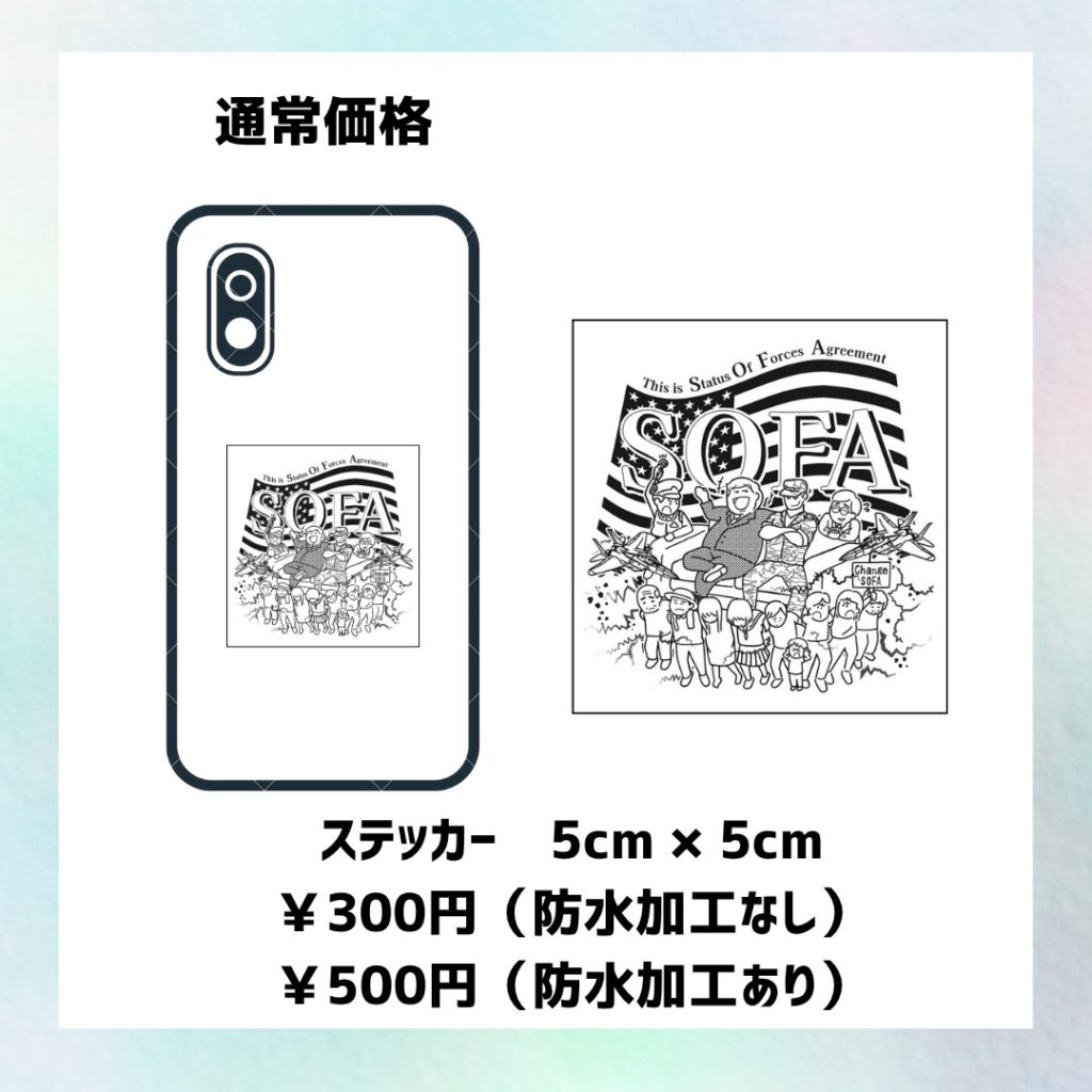 販売価格は少し高めですが、その分がSOFA(日米地位協定)改正を目指す活動の力になります。